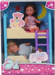 Vytvořte útulný pokojíček pro své panenky s okouzlujícím setem Evi Love. Dvě malé panenky mohou spát na dvoupatrové posteli s praktickým žebříkem, takže je večerní ukládání do postýlky stejně zábavné jako hraní během dne.