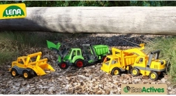 Objevte ekologický způsob hry s tímto aktivním traktorem s předním nakladačem od LENA. Hračka je vyrobena z recyklovaného plastu s příměsí dřeva, je plně mechanicky funkční a má odklápěcí kabinu pro snadnou manipulaci. Ideální pro děti od 2 let na domácí i venkovní hraní.