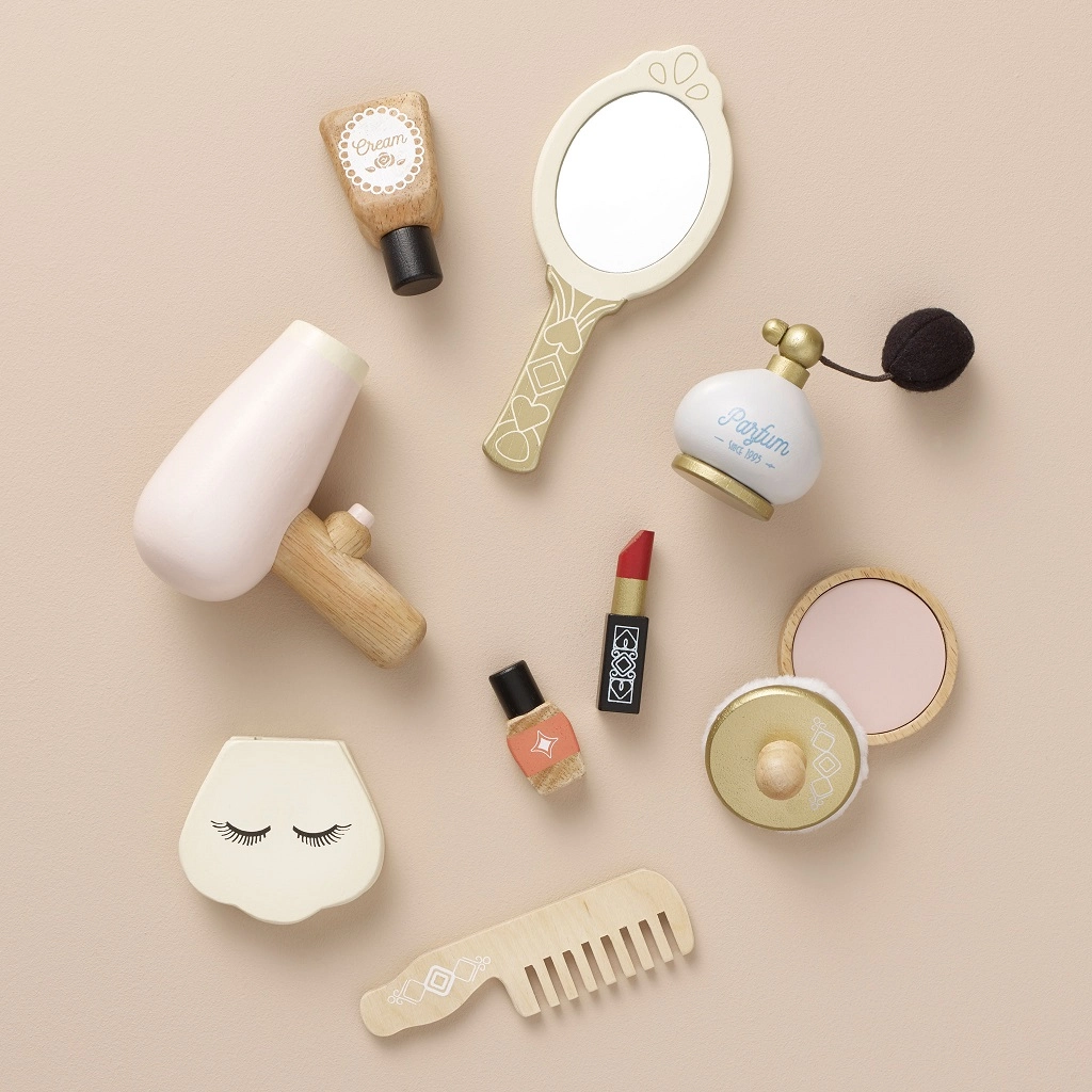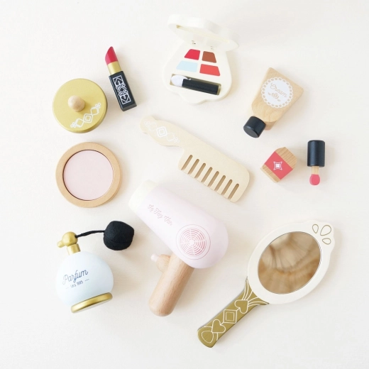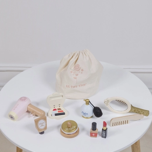 Dětská kosmetická taška s dřevěnými doplňky LE TOY VAN. FSC® materiály, netoxické barvy, 12 dílů. Podporuje představivost a hru na role. Věk 3+.