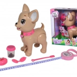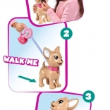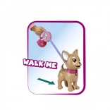 Roztomilý interaktivní pejsek čivava z kolekce CHI CHI LOVE učí děti starat se o mazlíčka zábavnou formou. Nakrmte ho modelínou, vydejte se na procházku a po lehkém stisku vodítka udělá hromádku. Součástí je vodítko, modelína, tvarovací forma a krabička ve tvaru srdce se sáčky pro snadný úklid. Velikost pejska je přibližně 20 cm.