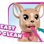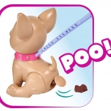 Interaktivní pejsek čivava Poo Poo od CHI CHI LOVE přináší dětem realistickou a zároveň bezpečnou hru na chov mazlíčka. Vyrobte pochoutku z modelíny, nakrmte pejska a vyrazte na procházku – po jemném zatlačení na vodítko pejsek pokrčí zadní nožičky a udělá hromádku, kterou lze snadno uklidit pomocí přiložených sáčků.