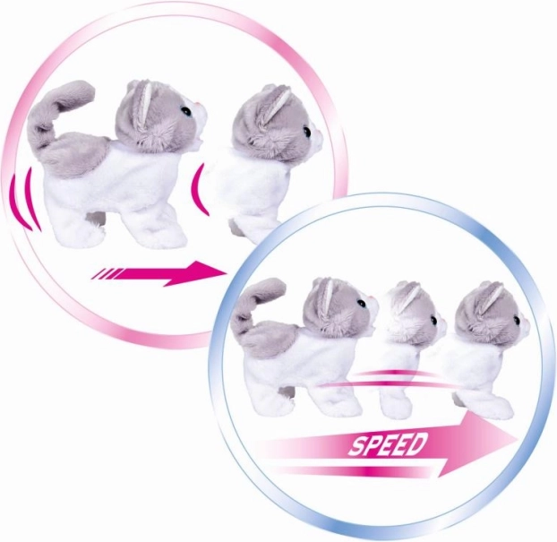 Roztomilá interaktivní kočička z měkkého plyše potěší každé dítě. Pohybuje se dvěma rychlostmi, vrtí ocáskem a vydává zábavné zvuky. Ideální společník pro každodenní hraní i mazlení.