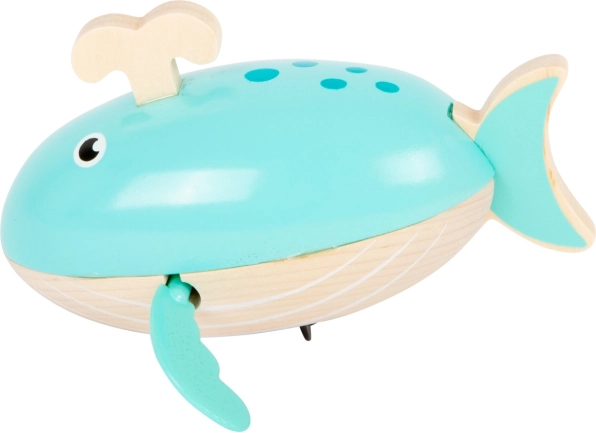 Tato dřevěná hračka ve tvaru velryby přináší mnoho radosti a zábavy pro děti při hře ve vodě. Je ideální pro použití ve vaně, na bazéně nebo u moře, kde se děti mohou naučit plavat a užít si hodiny zábavy. Díky natahovacímu mechanismu, který umožňuje otáčení bočních ploutví, se velryba může pohybovat samostatně po vodě.