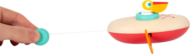 Jednoduše natáhněte a sledujte, jak se boční pádla roztočí a pelikán vypluje. Skvělý způsob, jak děti seznámit s principem příčiny a následku.