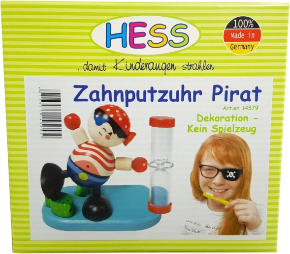 Motivujte děti k pravidelnému čištění zubů zábavnou formou. Dřevěný pirát s přesýpacími hodinami s modrým pískem spolehlivě odměří doporučené 2 minuty, zatímco integrovaný držák na zubní kartáček udrží koupelnu přehlednou.