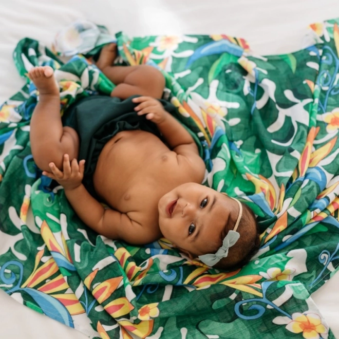 Lehká a nadýchaná bambusovo-bavlněná mušelínová plena Tommy Lise ve vzoru Lush Garden je jemná k dětské pokožce, prodyšná, chladivá a příjemná na dotek. Díky velkému rozměru 120 × 120 cm ji využijete jako přikrývku, zavinovačku i ochranu při kojení.