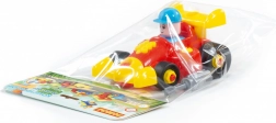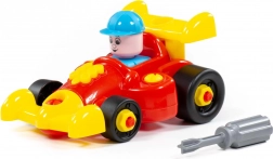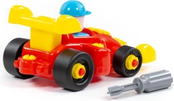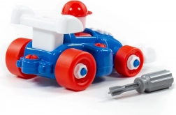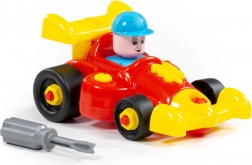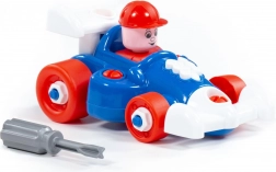 Tato barevná závodní formule nabízí dětem skvělý způsob, jak si hravou formou trénovat šikovnost. Pomocí přiloženého plastového šroubováku mohou malí stavitelé snadno odšroubovat kola, karoserii i další díly a pak je opět bezpečně sestavit. Interaktivní design s odnímatelným řidičem podněcuje fantazii a role-play.