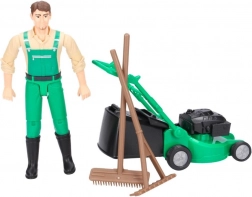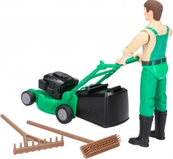 Sada BRUDER BWORLD zahradník se sekačkou přináší dětem realistické hraní na péči o trávník. Figurka má kloubové končetiny a ruce uzpůsobené k pevnému uchopení nářadí, takže může snadno tlačit sekačku, hrabat nebo zametat.