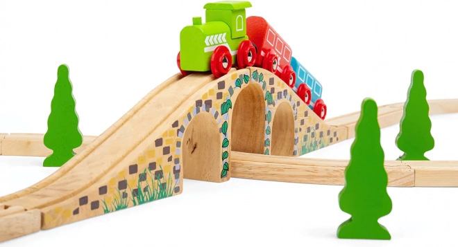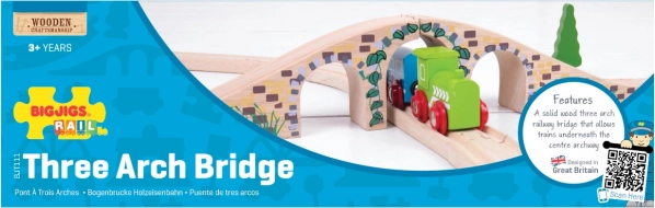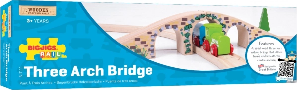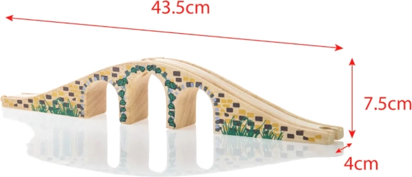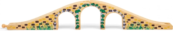 Tento stylový tříobloukový most je perfektním doplňkem každé dřevěné vláčkodráhy. Díky realistickým detailům kamenných cihel a hladkému povrchu dodá vaší trati výškové členění i vizuální atraktivitu. Umožní vlakům projíždět nad i pod mostem a vytvářet tak zábavné herní scénáře.