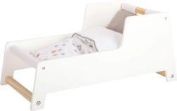 Součástí je oboustranné, neutrálně laděné povlečení a velká přikrývka, pod kterou se pohodlně vejdou panenky či plyšáci do 46 cm. Jemné barvy a minimalistické linie z ní dělají vkusný doplněk do každého interiéru a podporují kreativní a napodobivou hru.