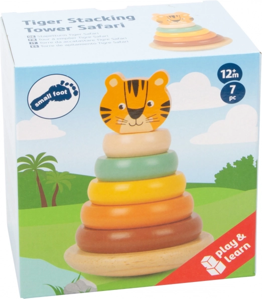 Tato působivá nasazovací věž s tygřím motivem je nejen krásnou hračkou, ale také skvělým nástrojem pro rozvoj dětských dovedností. Skládá se ze 7 dílků, včetně základny a šesti barevných kroužků, které je možné nasadit na tyč zakončenou tygří hlavou. Tímto způsobem děti trénují koordinaci ruka-oko a porozumění tvarům.