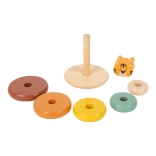 Dřevěná nasazovací věž s tygří hlavou je ideální hračkou pro rozvoj motoriky a koordinace rukou a očí u dětí od 12 měsíců. Jednoduché a barevné provedení pomáhá dětem pochopit tvary a velikosti.