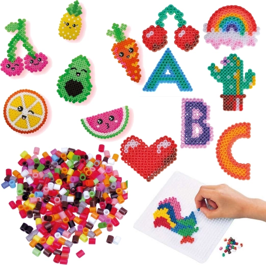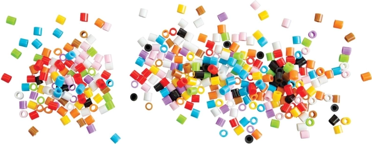 Velké množství barevných korálků dává prostor pro malé i velké projekty – od jednoduchých tvarů po detailní pixel-art dekorace.