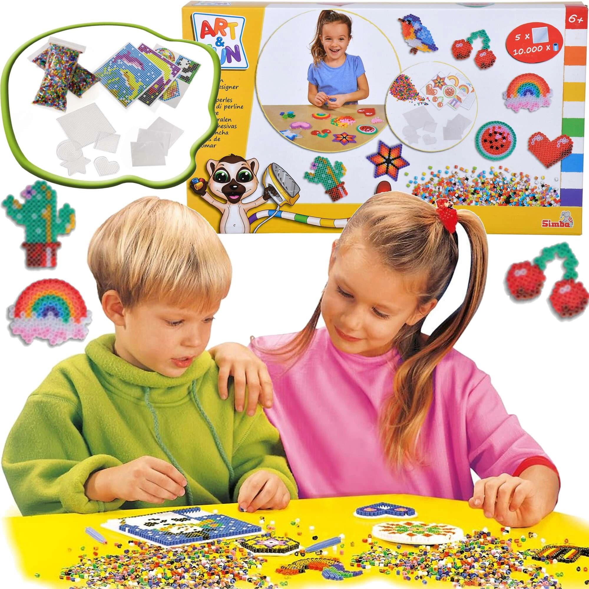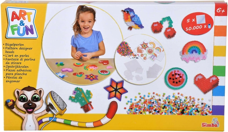 Objevte svět pixelové tvorby se sadou zažehlovacích korálků ART & FUN od SIMBA. V balení najdete 10 000 barevných korálků a 5 opakovaně použitelných podložek, na které skládáte libovolné motivy. Po přikrytí pečicím papírem a přežehlení dospělou osobou se korálky spojí a ztvrdnou do trvalé dekorace.