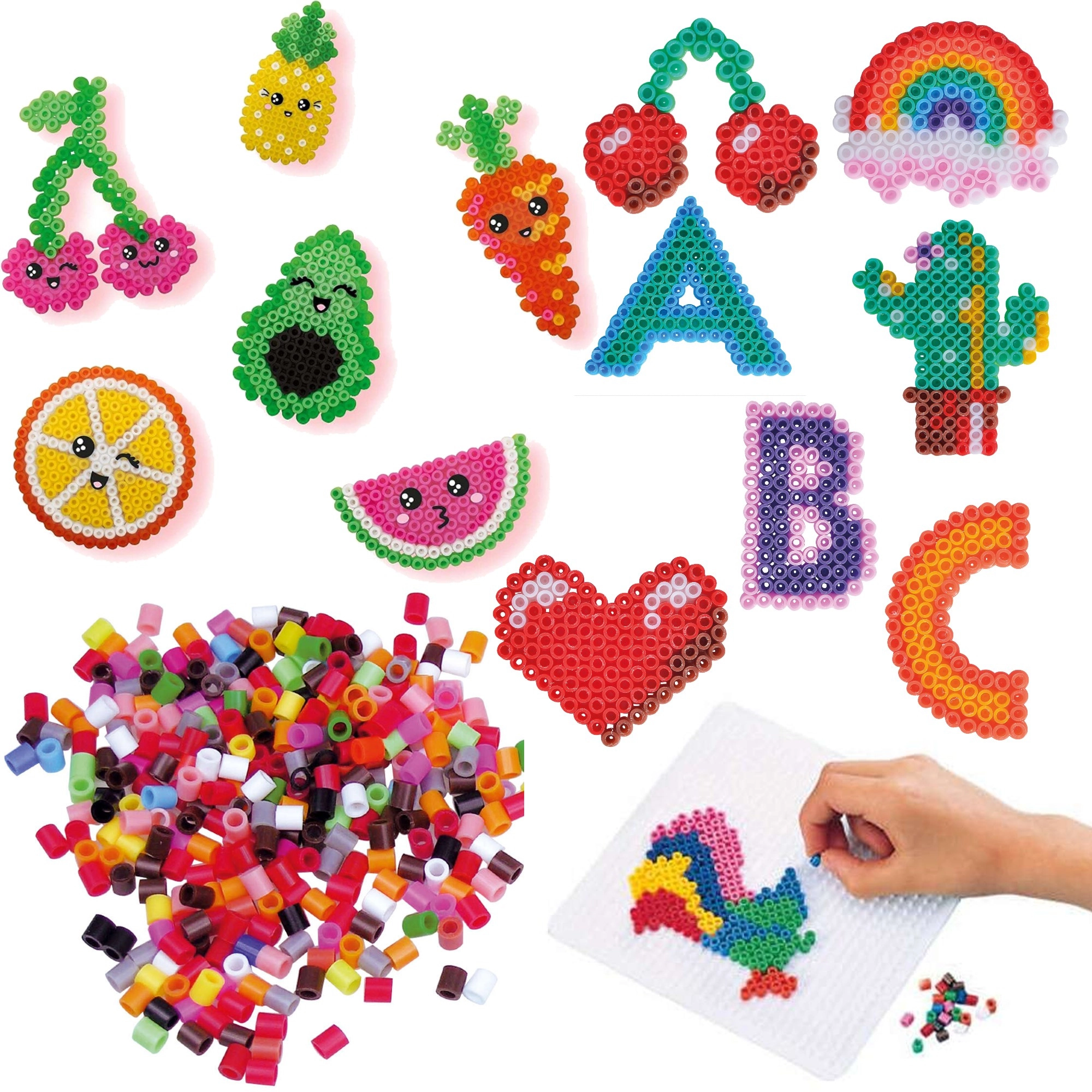 Sada podporuje tvořivost, koordinaci oko–ruka a u dětí posiluje jemnou motoriku. Vytvářejte písmenka, srdíčka, ovoce, zvířátka nebo duhy – hotové motivy využijete jako přívěsky, ozdoby do pokojíčku nebo dárky.