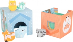 Kostky lze stavět do vysoké věže nebo je vnořit do sebe. Okýnka a dvířka zvou ke schovávačkám se zvířátky a rozvíjejí fantazii i jemnou motoriku.