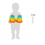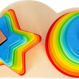Barevná a zábavná nasazovací věž ve tvaru duhy pro rozvoj dětské motoriky, rozeznávání tvarů a barev.