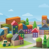 - 40 dřevěných kostek + herní podložka pro stavbu vesničky