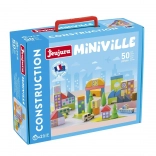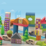 Tato kvalitní dřevěná stavebnice je ideální volbou pro první stavitelské projekty. Díky různorodým tvarům a barevným potiskům děti snadno postaví domky, ulice i celé městečko. Součástí jsou také jednoduchá dřevěná vozidla a herní podložka, které dodají hře příběh a podporují rozvoj fantazie.