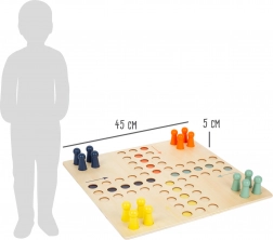 Hra je vyrobena z kvalitního dřeva v moderním designu a podporuje logické myšlení, trpělivost i základy počítání. Součástí je dřevěná kostka a 16 figurek ve čtyřech barvách – oranžové, žluté, modré a mátově zelené.