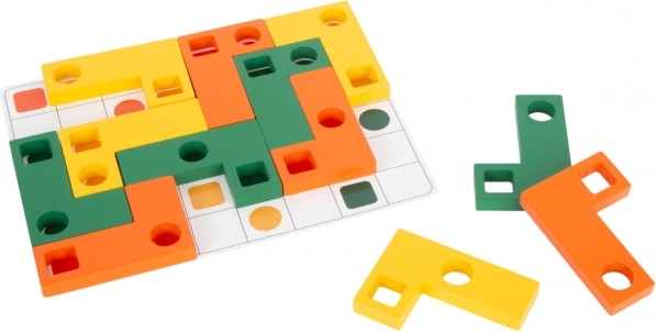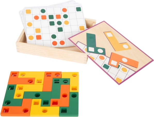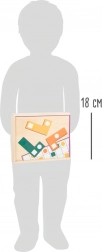 Tato dřevěná logická hra SMALL FOOT nabídne dětem zábavné výzvy i chytré učení. Dílky s různými otvory se vkládají na herní kartičky podle předloh, takže si děti procvičí přesnost, trpělivost a strategii skládání. Díky pestrým barvám a tvarům je hra poutavá a snadno srozumitelná.