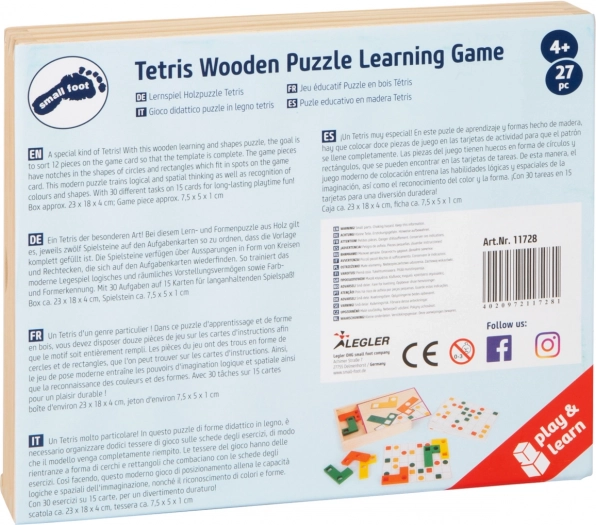 V balení najdete praktickou dřevěnou krabičku s posuvným víkem, která bezpečně uschová všechny komponenty. Hra je skvělým dárkem i doplňkem k dalším vzdělávacím hrám SMALL FOOT. Podporuje samostatné hraní i společné řešení úkolů s rodiči.
