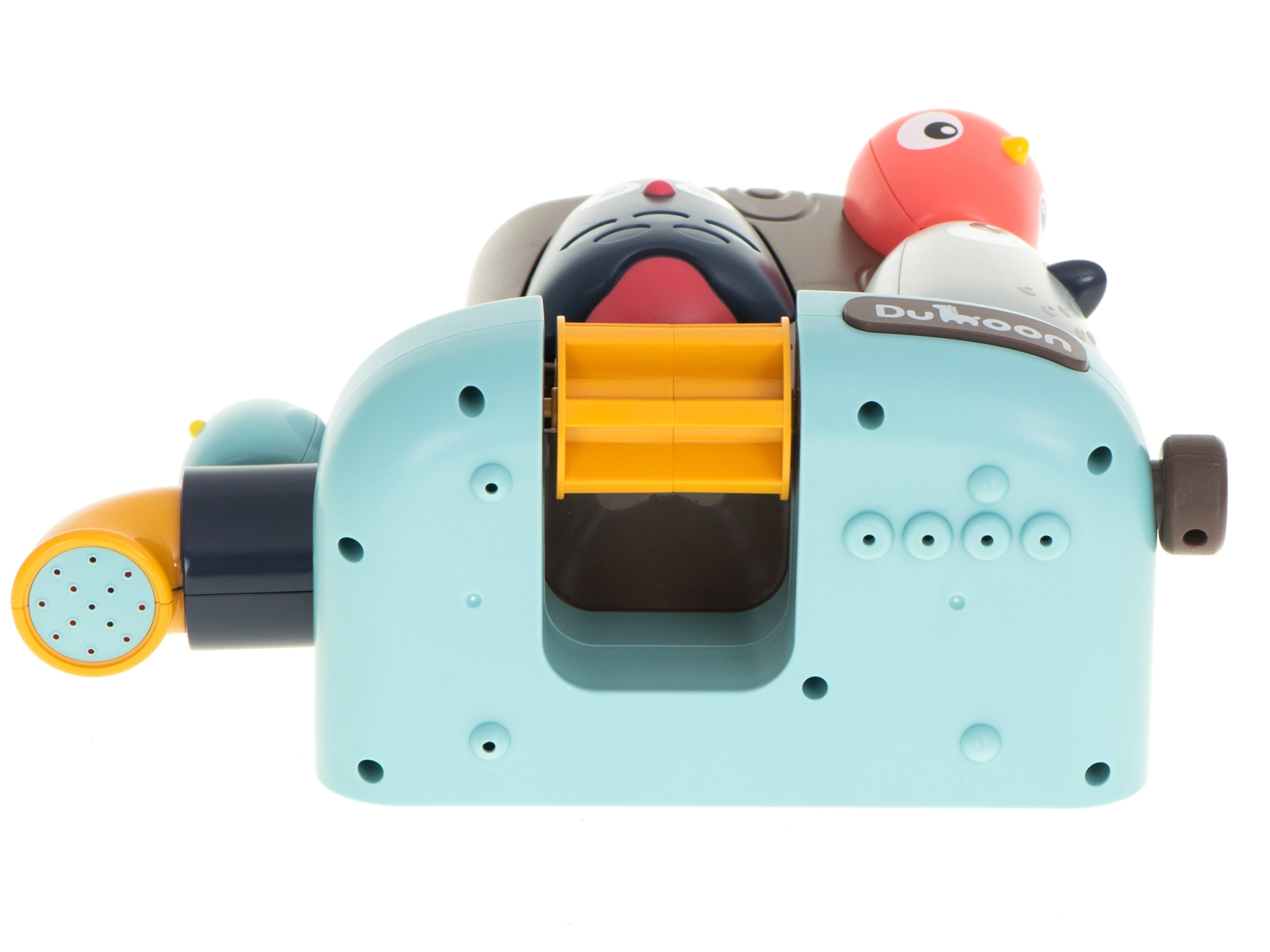 Veselý stromový domek s roztomilými ptáčky je ideální motivací pro děti, které koupání zrovna nemilují. Jednoduše jej připevníte na vanu nebo obklady pomocí přísavek, naplníte vodou z přiloženého kelímku a zábava začíná. Modrý ptáček ovládá kohoutek – otočením vodu zastavíte či pustíte, sova hlídá vodní mlýnek a šedý ptáček vytváří sprchový efekt díky jemným otvorům.