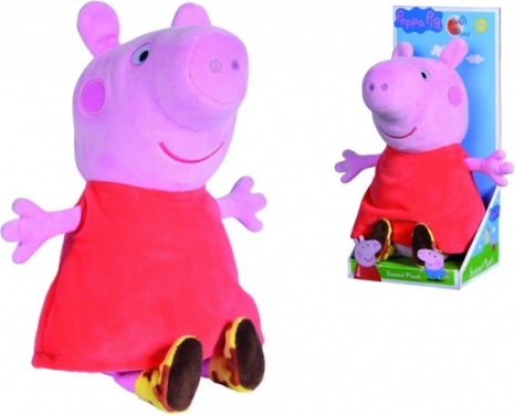 Roztomilé plyšové prasátko Peppa v červených šatičkách potěší každé dítě. Po stisknutí bříška vydává veselé zvuky, je příjemně měkoučké a ideální na mazlení i hraní. Kompaktní výška 22 cm se skvěle hodí do dětských ručiček.