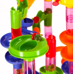 Tato kuličková dráha vám umožní navrhovat a stavět vlastní labyrinty z pestrých plastových dílů. Vytvořte si originální konstrukce, pořádejte závody a sledujte, jak kuličky sviští spirálami, tunely a zatáčkami. Díky intuitivnímu spojování se děti učí logickému uvažování a řešení problémů.