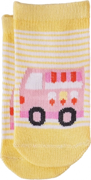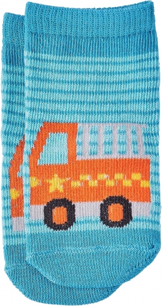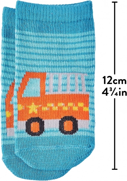 Roztomilé dětské ponožky z organické bavlny pro batolata dodají pohodlí i hravý styl. Na výběr jsou veselé motivy vozidel (autíčko, hasičské auto, zmrzlinářský či nákladní vůz) a měkoučký žebrovaný lem zajistí, že ponožky dobře drží na nožce. Skvělé jako ekologická volba pro citlivou dětskou pokožku.