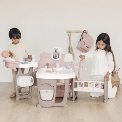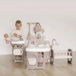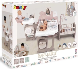 Tento moderní herní koutek Baby Nurse obsahuje tři různé oblasti: kuchyň, koupelnu a ložnici, které společně poskytují kompletní péči o panenky. Díky mnoha doplňkům může vaše dítě nasimulovat skutečný svět dospělých a pečovat o svou panenku pomocí role-playing technik.