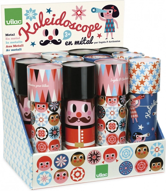 Objevte kouzlo barevných vzorů s klasickým kaleidoskopem VILAC od ilustrátorky Ingely P. Arrhenius. Tento odolný kovový kaleidoskop rozvíjí představivost a smysl pro barvy a tvary. Každý kus má jedinečný motiv – při objednávce můžete požádat o konkrétní design. Podporuje kreativitu, kvalitní kovové provedení a stylový retro vzhled potěší malé i velké objevitele.