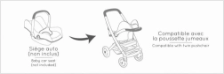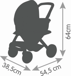 Robustní potahy z plastové tkaniny jsou odolné a snadno udržovatelné – stačí je otřít vlhkým hadříkem. Otočná přední kolečka a protihluková vrstva na kolech se postarají o plynulý, tichý a stabilní pohyb doma i venku. Vhodné pro panenky do 42 cm (panenka není součástí balení).