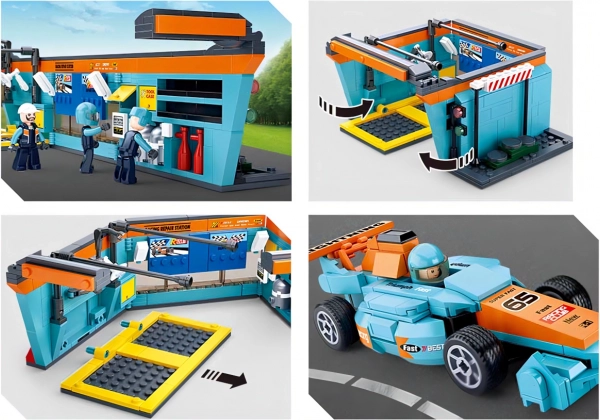 Tato stavebnice Sluban Racing Team přináší autentické prostředí závodního servisu: od garáže s otočnou plošinou přes regály s nářadím až po plně vybavený pit stop. Děti si procvičí logické myšlení, jemnou motoriku i týmovou spolupráci při rychlé výměně pneumatik a opravách vozu.