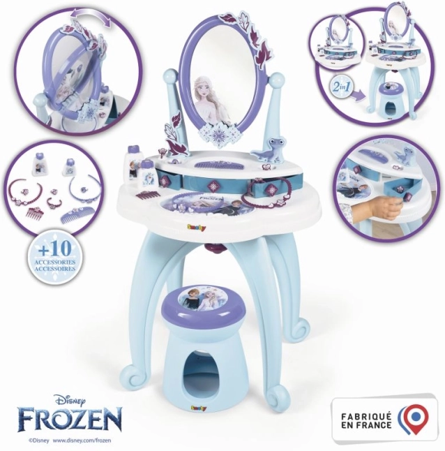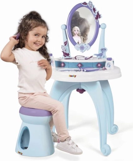 Ponořte se do kouzelného světa Ledového království s tímto stylovým toaletním stolkem 2v1. Nádherný design v barvách Elsy a Anny z Ledového království promění každou místnost v palácovou komnatu.