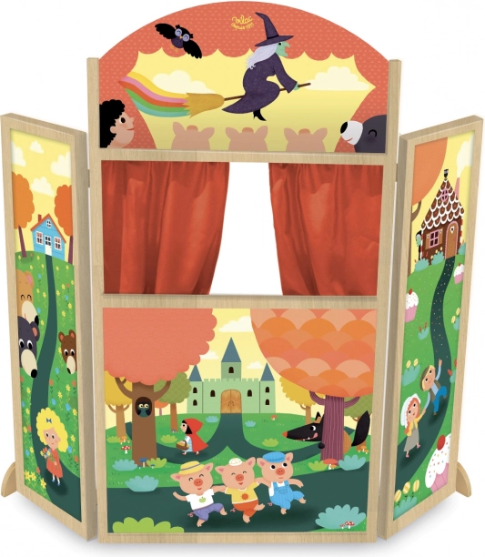 Vilac dřevěné divadlo s pohádkovými motivy přináší dětem možnost stát se režisérem a hercem vlastních příběhů. Toto velkolepé trojstěnné divadlo pomáhá rozvíjet dětskou kreativitu a představivost.