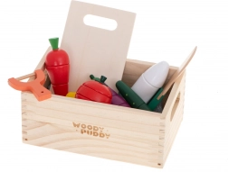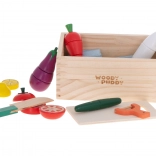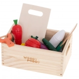 Barevná sada dřevěné zeleniny na magnety v praktické bedýnce potěší všechny malé kuchaře. Děti si bezpečně vyzkouší „krájení“ na desce, „loupání“ obřezávačem a přípravu jídla pro panenky i plyšáky. Díly se díky magnetům snadno spojují a znovu rozpojují – rozvíjí jemnou motoriku, učení počítání i fantazii při hře na kuchyni. Vyrobeno z hladce opracovaného dřeva a natřeno netoxickými barvami.