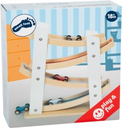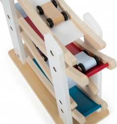 Tato krásná dřevěná závodní dráha je ideální pro malé motoristy. Díky čtyřem autům, které se mohou střemhlav pustit směrem dolů po rampě, je hra plná dynamiky a zábavy. Vyrobeno z kvalitního přírodního dřeva v kombinaci s barevnými akcenty, nabízí estetický vzhled a zároveň podporuje rozvoj motoriky dětí.
