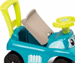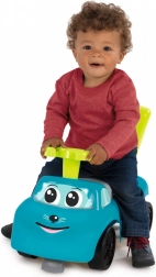 Modrý jeździk je navržen tak, aby poskytoval bezpečný a stabilní pohyb pro malé děti. S jeho pohodlným sedadlem, které obsahuje úložný prostor, umožňuje dětem schovat drobnosti. Je vybaven zpětným držadlem, které dítě může použít pro snadnější manévrování. Zabudované výstupky brání před překlopením vpřed nebo vzad.