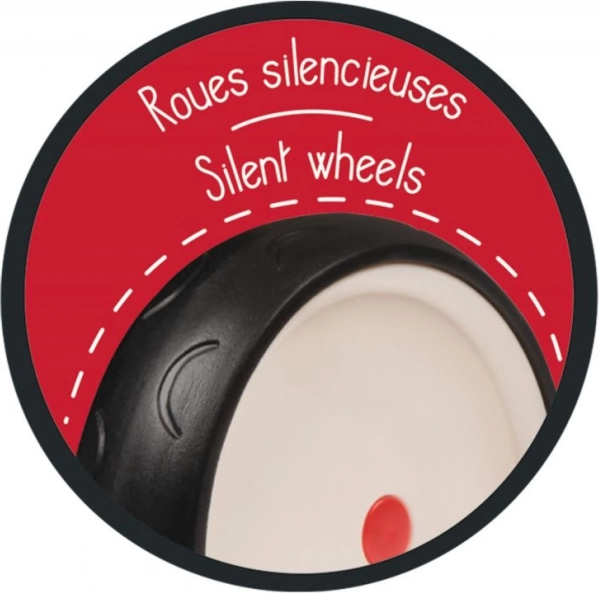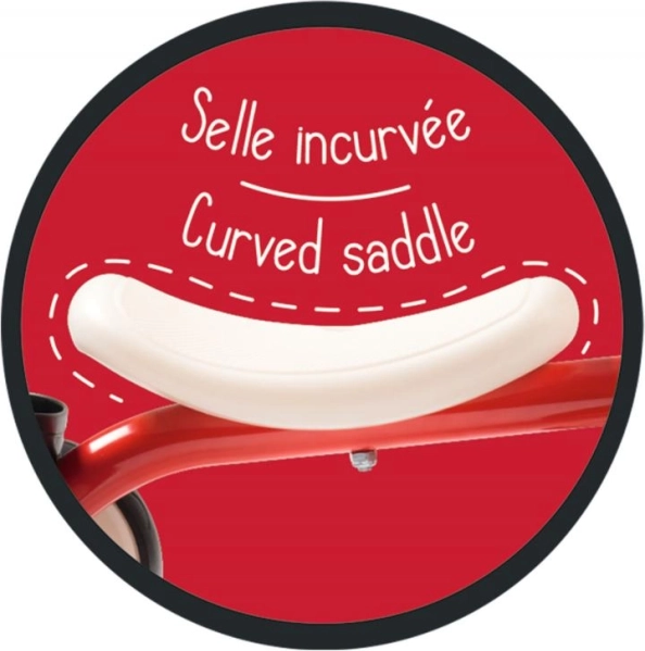 Toto odrážedlo má odolný kovový rám, což zajišťuje dlouhou životnost. Díky 4 tichým kolečkám je velmi stabilní a tichý v provozu. Pohodlné sedadlo a plastový košík jsou ideální pro převoz drobností. Je vybaveno omezeným úhlem řízení pro maximální bezpečnost a stabilitu. Praktická rukojeť pod sedadlem usnadňuje přepravu, když je třeba odrážedlo přenést.