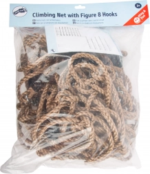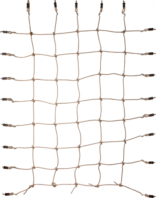 Šplhací síť je vybavena robustními plastovými objímkami a kovovými průvleky, které zajišťují snadné a pevné upevnění.