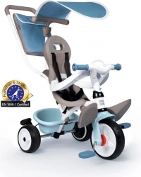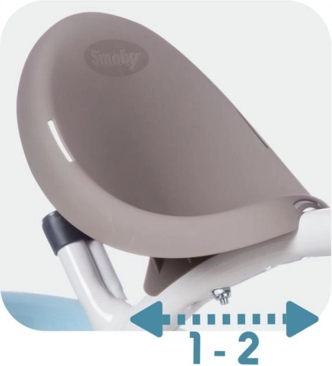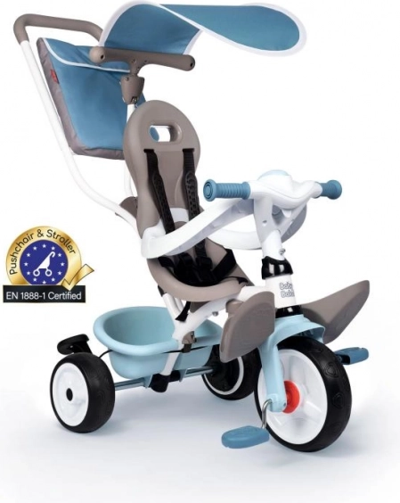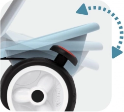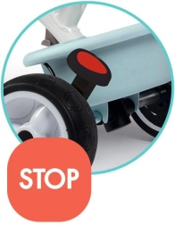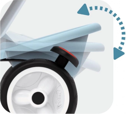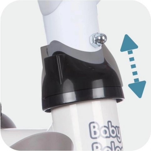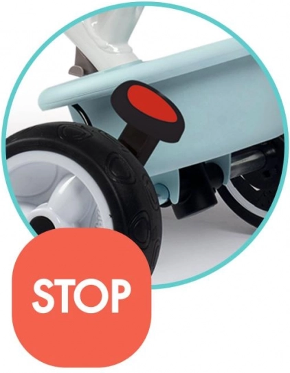 SMOBY Baby Balade Plus je spolehlivá první tříkolka, která doprovodí vaše dítě od prvních vyjížděk až po samostatnou jízdu. Rodiče ocení vodicí tyč s nastavitelnou výškou a blokaci řízení pro snadné ovládání, stejně jako parkovací brzdu pro bezpečné zastavení. Díky mechanismu volného kola se kolo může otáčet, zatímco pedály zůstávají stát – ideální při vedení dospělým.