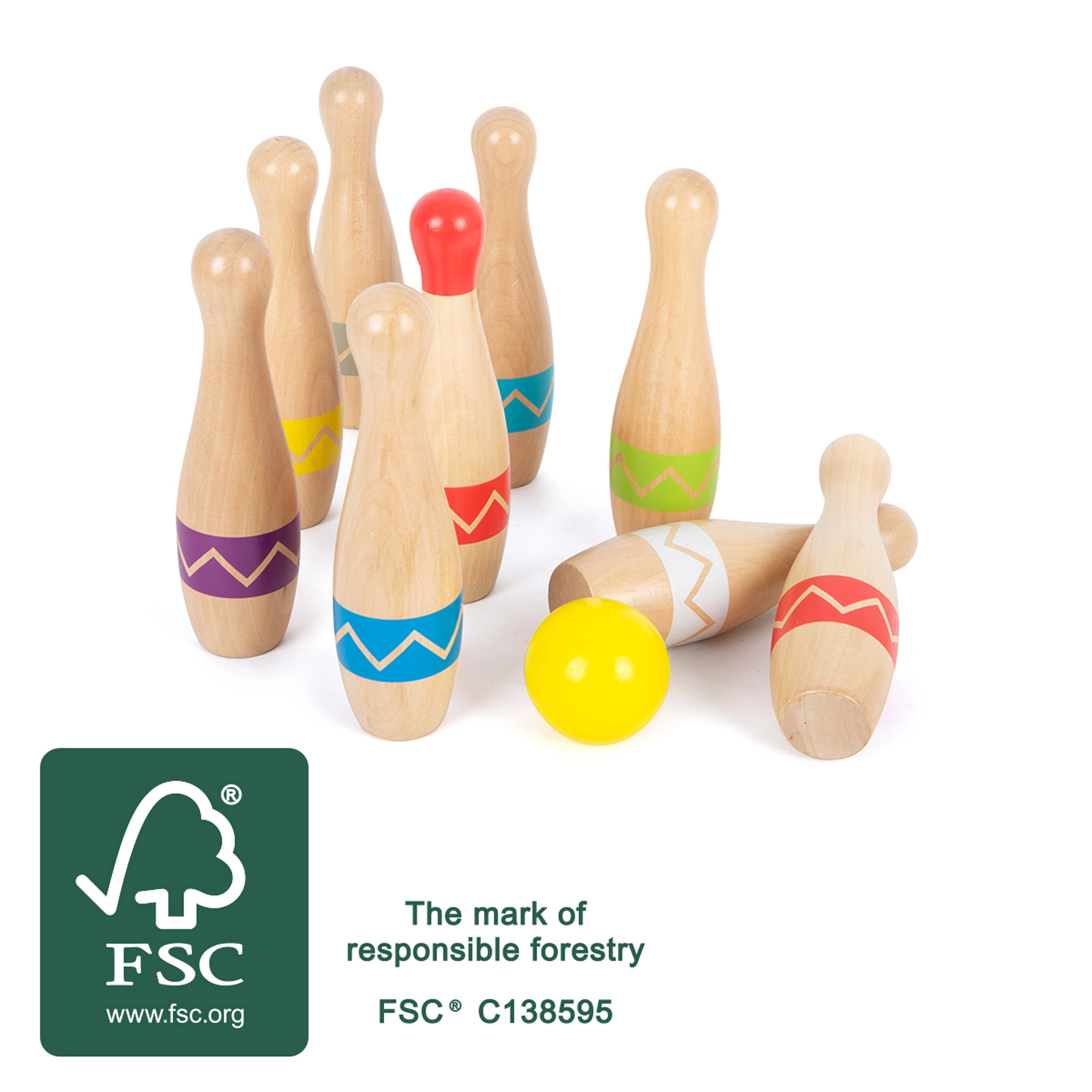 Objevte klasickou zábavu v moderním provedení. Dřevěné kuželky SMALL FOOT Active jsou vyrobené z certifikovaného FSC® dřeva, které je šetrné k přírodě i bezpečné pro děti. Sada je skvělá pro rodinné chvilky, oslavy i dětské hry na zahradě.