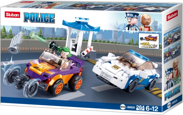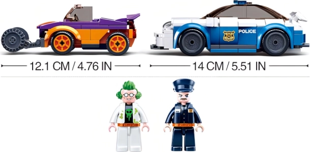 Stavebnice obsahuje dvě vozidla - bílo-modré policejní auto a originální barevné auto, rovněž s natahovacím mechanizmem. Každé auto disponuje unikátními detaily, designem a velikostí, umožňující nespočet herních scénářů.