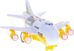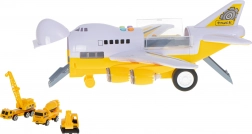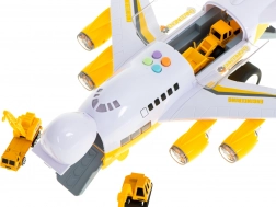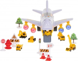 Tento multifunkční set kombinuje dopravní letadlo s mini stavebním světem. Autíčka mohou do letadla najet po sklopné přední rampě a díky otevíratelné horní části mají děti snadný přístup k nákladu. Motory se rozsvítí LED světly, které podpoří realistický zážitek ze hry.