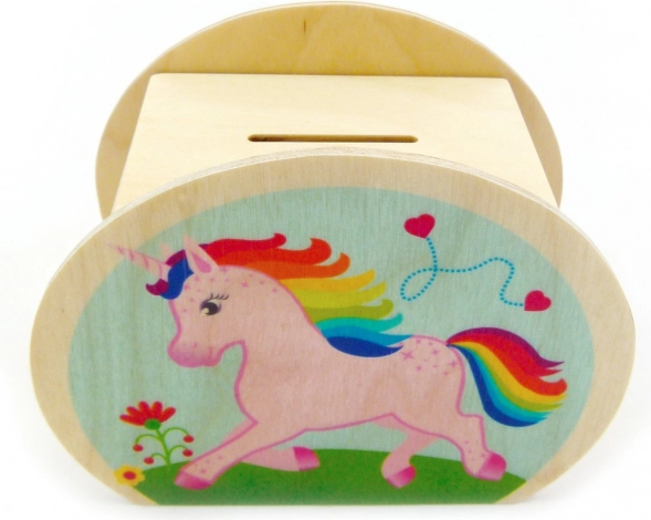 Tato barevná pokladnička s jednorožcem motivuje děti k finanční gramotnosti a učení se hodnotě peněz. Robustní zpracování z přírodního dřeva zaručuje dlouhou životnost a příjemný přírodní vzhled, který krásně zapadne do dětského pokoje.