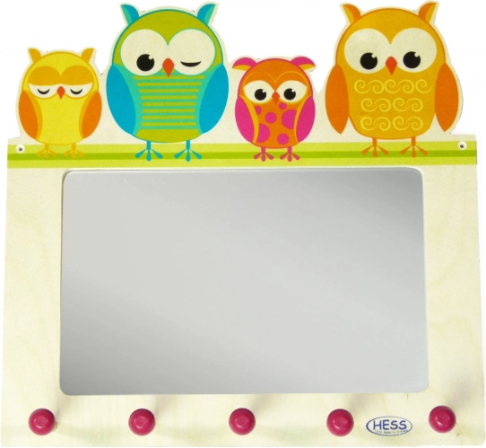 Tento barevný věšák ozdobený motivem soví rodiny rozzáří každý dětský pokoj či chodbu. Je vybaven pěti háčky, které poskytují dostatek prostoru pro zavěšení různých oděvů a doplňků. Zrcadlo vyrobené z nerozbitného plexiskla je bezpečné a praktické.