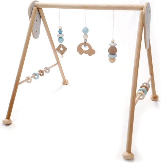 Tato dřevěná hrazdička je vybavena přemístitelnými prvky a chrastítky, které můžete přizpůsobit potřebám vašeho dítěte. Snadná montáž umožňuje sestavení hrazdičky ve třech různých výškových úrovních, což zajišťuje dlouhodobé využití hračky.
