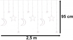 Velkorysá šířka 2,5 m a motivy měsíců a hvězd promění každé okno či zeď v útulnou světelnou scénu. Studeně bílá barva podtrhne zimní náladu a vnese do interiéru čistý, moderní vzhled.