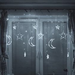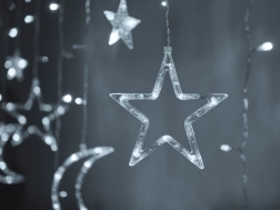 Vytvořte si doma kouzelnou atmosféru se závěsnou LED kurtynou s motivem měsíce a hvězd. Nabízí elegantní studeně bílou barvu, 8 světelných režimů a síťové napájení pro nepřetržitý lesk. Díky 138 LED a odolnosti IP44 je ideální jako vánoční i celoroční dekorace do obýváku, ložnice či dětského pokoje.